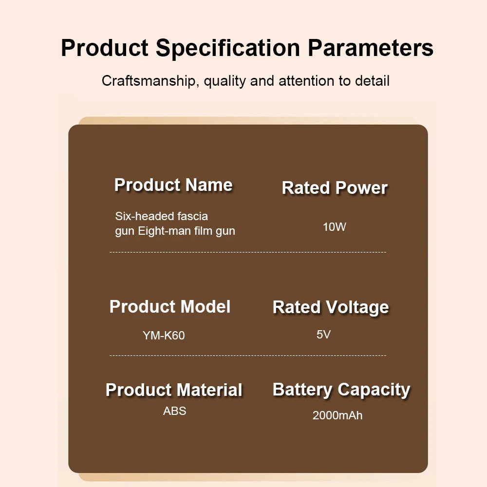 Six Interchangeable Heads – Customized attachments for targeted muscle therapy.